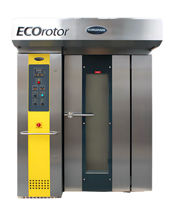 Estes fornos contam com um carro de bandejas de vários andares que gira no seu interior para garantir uma cocção uniforme do pão devido ao ar quente que circula através do ventilador.